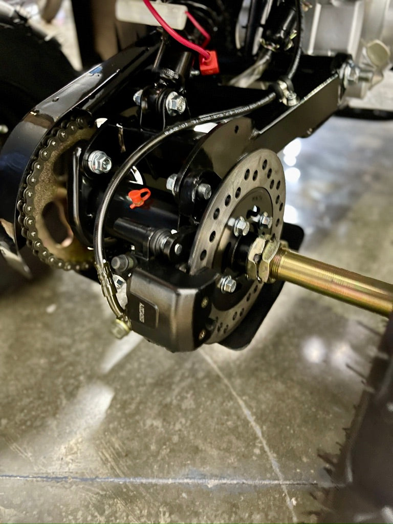 Greaseable A-arms, swingarm, and rear axle for extended durability