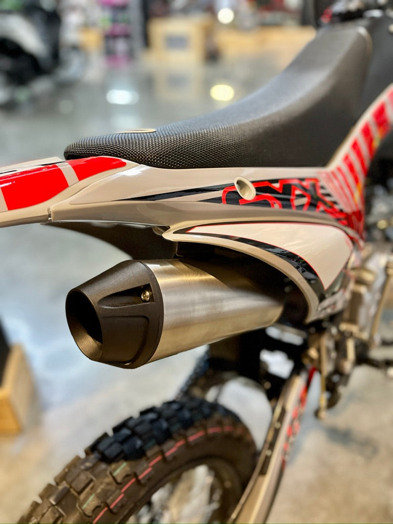 A versatile, power-forward dirt bike built for trail riding, training, and riders ready to step into full-manual performance.