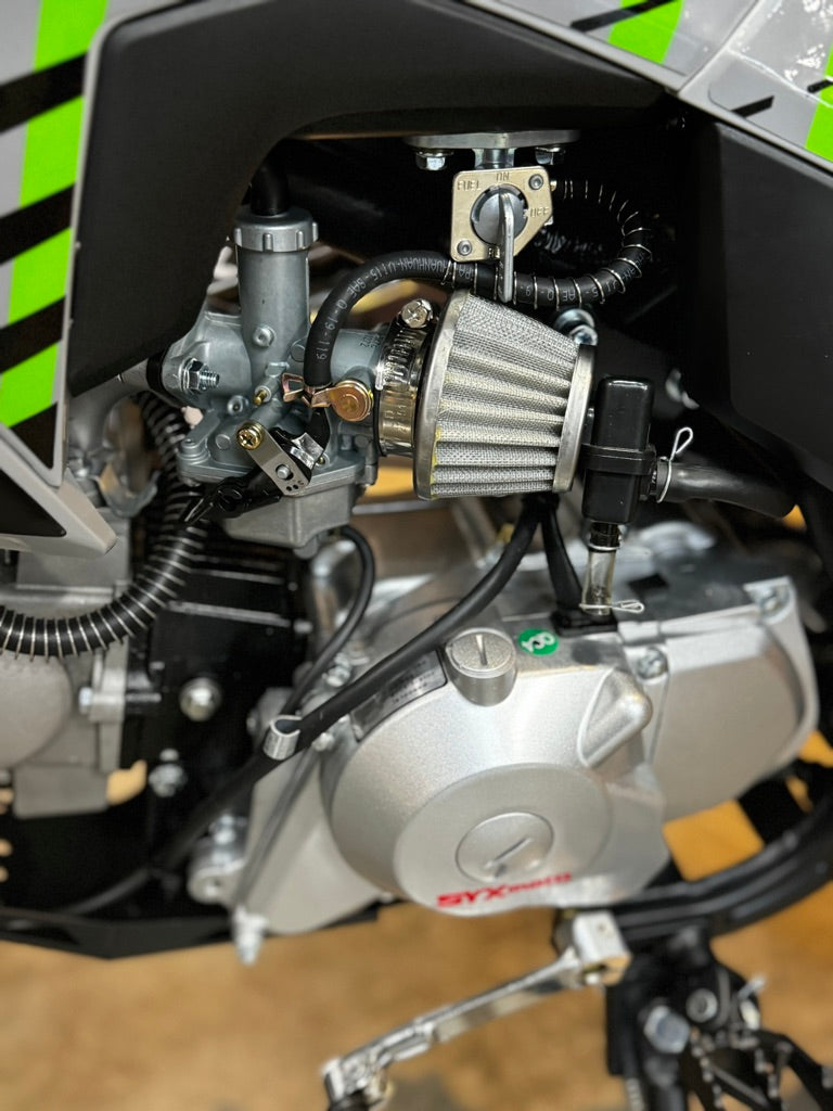 This 2026 SYXMOTO 125cc delivers the full manual riding experience—strong YX engine, liquid cooling, upgraded suspension, and a true 4-speed transmission. Built for riders who demand more control, more travel, and more off-road performance.