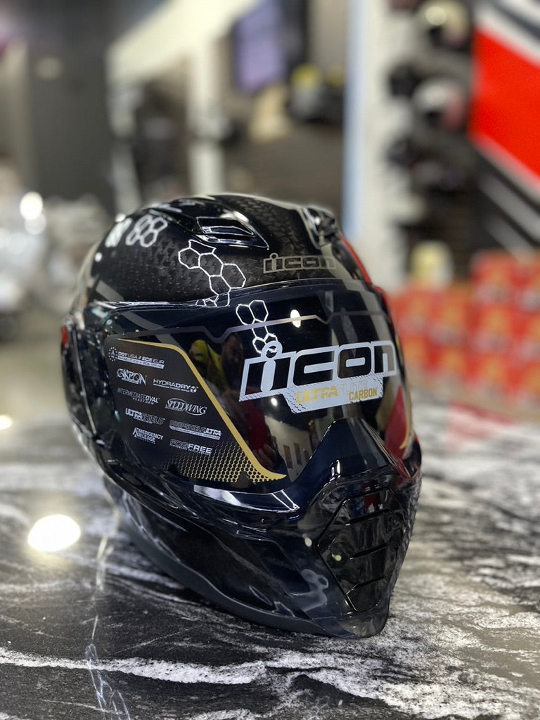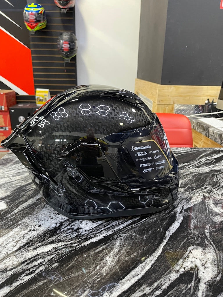 The ULTRAFLITE™ Carbon is built for riders who demand top-tier performance without compromise. Its handcrafted carbon composite shell delivers maximum strength with minimal weight, while the revised intermediate oval head form ensures a dialed-in fit for more riders. Inside, a Hydradry™ comfort liner with Ax® Suede provides a custom feel built for long days in the saddle. Street-focused features include a quick-change ULTRASHIELD™, fog-free Dropshield Ultra™, and a recessed twin-channel Speedwing™ Supervent system for high-flow cooling. Oversized intake and exhaust ports, plus a removable breath deflector and chin curtain, give riders full control over airflow and comfort.