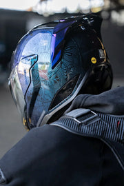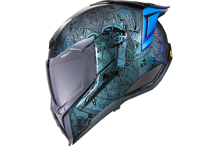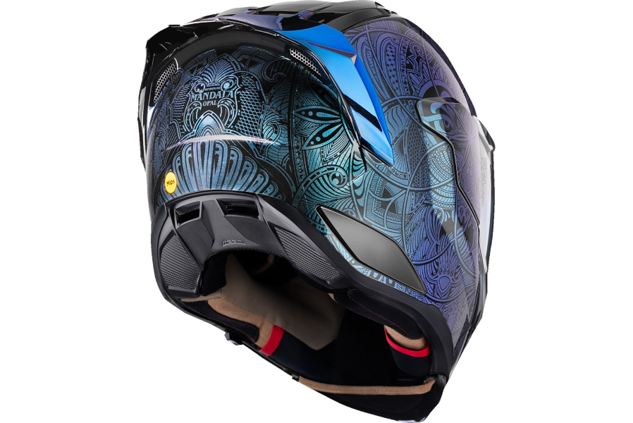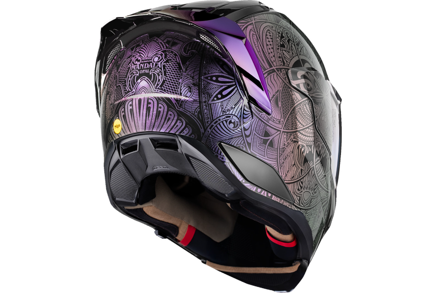 The ULTRAFLITE™ Opal Mandala channels chaos into clarity with its hypnotic mandala-inspired geometric graphic layered in ICON’s color-shifting Opal paint, shifting hues like thought in motion. Beneath the enlightened surface lies a handcrafted FRP shell, engineered for lightweight strength and certified to DOT FMVSS 218 and ECE R22.06 standards. Stay cool and focused with oversized intake and exhaust ports, a recessed twin-channel Speedwing™ Supervent system, and a Hydradry™ comfort liner with Ax® Suede for long-ride luxury. Vision is controlled through a quick-change ULTRASHIELD™ and fog-free Dropshield Ultra™, activated by an exterior switch for on-the-fly transitions. Add the optional HELMLINK™ Bluetooth® system (sold separately) to stay connected while you seek the fast path to self-discovery.