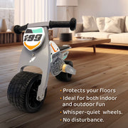 Perfect for active little ones! This wooden ride-on is strong and silent, ideal for toddlers aged 10-24 months who love to jump and roll.